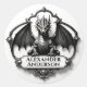 Grey Dragon with Yellow Eyes Personalise Classic Round Sticker