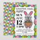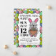 This invitation is perfect for anybody planning a fun Easter egg hunt this Easter holiday. Featuring a grey Easter bunny and decorated with vibrant Easter eggs around the border and on the back of the invite, this invitation will be sure to impress your guests.