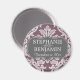 Grey & Eggplant Damask Pattern Wedding Favour Magnet