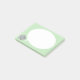 A this sticky note features a simple design of a textural, modern grey elephant on a light grass green background with a large white speech bubble to make this a silly and fun addition to any child or whimsical adult's stationery collection or desk top.
