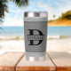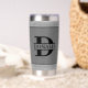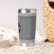 Grey Fake Leather Stiches Monogram Custom Name Insulated Tumbler