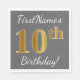 Grey, Faux Gold 10th Birthday + Custom Name Napkin