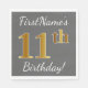 Grey, Faux Gold 11th Birthday + Custom Name Napkin