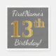 Grey, Faux Gold 13th Birthday + Custom Name Napkin