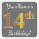 Grey, Faux Gold 14th Birthday + Custom Name Square Sticker