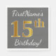 Grey, Faux Gold 15th Birthday + Custom Name Napkin