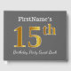 This guest book design features the ordinal number "15th" with a faux/imitation gold-like appearance. It also features a personalised name, and a grey (grey) coloured background. It could be used at a birthday party for somebody who is celebrating their fifteenth birthday. [~Z0000193]
