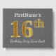This guest book design features the ordinal number "16th" with a faux/imitation gold-like appearance. It also features a custom name, and a grey (grey) coloured background. It could be used at a birthday party for somebody who is celebrating their sixteenth birthday. [~Z0000193]