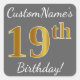 Grey, Faux Gold 19th Birthday + Custom Name Square Sticker