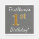 Grey, Faux Gold 1st Birthday + Custom Name Napkin