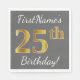 Grey, Faux Gold 25th Birthday + Custom Name Napkin