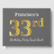 This guest book design features the ordinal number "33rd" with a faux/imitation gold-like appearance. It also features a custom name, and a grey (grey) coloured background. It could be used at a birthday party for somebody who is celebrating their thirty third birthday. [~Z0000193]