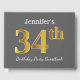 This guest book design features the ordinal number "34th" with a faux/imitation gold-like appearance. It also features a custom name, and a grey (grey) coloured background. It could be used at a birthday party for somebody who is celebrating their thirty fourth birthday. [~Z0000193]