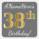 Grey, Faux Gold 38th Birthday + Custom Name Square Sticker