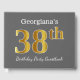 This guest book design features the ordinal number "38th" with a faux/imitation gold-like appearance. It also features a custom name, and a grey (grey) coloured background. It could be used at a birthday party for somebody who is celebrating their thirty eighth birthday. [~Z0000193]