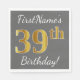 Grey, Faux Gold 39th Birthday + Custom Name Napkin