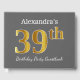 This guest book design features the ordinal number "39th" with a faux/imitation gold-like appearance. It also features a personalised name, and a grey (grey) coloured background. It could be used at a birthday party for somebody who is celebrating their thirty ninth birthday. [~Z0000193]