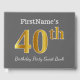 This guest book design features the ordinal number "40th" with a faux/imitation gold-like appearance. It also features a customised name, and a grey (grey) coloured background. It could be used at a birthday party for somebody who is celebrating their fortieth birthday. [~Z0000193]
