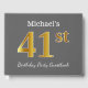 This guest book design features the ordinal number "41st" with a faux/imitation gold-like appearance. It also features a personalised name, and a grey (grey) coloured background. It could be used at a birthday party for somebody who is celebrating their forty first birthday. [~Z0000193]
