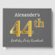 This guest book design features the ordinal number "44th" with a faux/imitation gold-like appearance. It also features a customised name, and a grey (grey) coloured background. It could be used at a birthday party for somebody who is celebrating their forty fourth birthday. [~Z0000193]