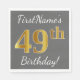 Grey, Faux Gold 49th Birthday + Custom Name Napkin