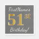 Grey, Faux Gold 51st Birthday + Custom Name Napkin