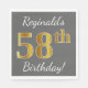 This simple paper napkin design features a message like "Reginald’s 58th Birthday!", with the "58th" having a faux/imitation gold-like appearance, on a grey (grey) coloured background. The name can be personalised. It could be used at a birthday party for somebody who is celebrating their fifty eighth birthday. [~Z0000190]