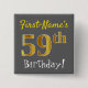 Grey, Faux Gold 59th Birthday, With Custom Name 15 Cm Square Badge