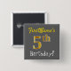 This simple square button design features a message like "FirstName’s 5th Birthday!", with the "5th" having a faux/imitation gold-like colouring look, on a grey (grey) coloured background. The name can be personalised. Buttons like these could perhaps be worn by guests at a birthday party for somebody who is celebrating their fifth birthday, where the party is being held in a large area with lots of other people present (such as a city park or a theme park). [~Z0000192]