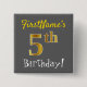 Grey, Faux Gold 5th Birthday, With Custom Name 15 Cm Square Badge