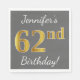 Grey, Faux Gold 62nd Birthday + Custom Name Napkin