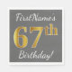 Grey, Faux Gold 67th Birthday + Custom Name Napkin