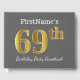This guest book design features the ordinal number "69th" with a faux/imitation gold-like appearance. It also features a custom name, and a grey (grey) coloured background. It could be used at a birthday party for somebody who is celebrating their sixty ninth birthday. [~Z0000193]