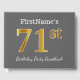 This guest book design features the ordinal number "71st" with a faux/imitation gold-like appearance. It also features a customised name, and a grey (grey) coloured background. It could be used at a birthday party for somebody who is celebrating their seventy first birthday. [~Z0000193]