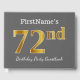 This guest book design features the ordinal number "72nd" with a faux/imitation gold-like appearance. It also features a customised name, and a grey (grey) coloured background. It could be used at a birthday party for somebody who is celebrating their seventy second birthday. [~Z0000193]