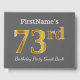 This guest book design features the ordinal number "73rd" with a faux/imitation gold-like appearance. It also features a personalised name, and a grey (grey) coloured background. It could be used at a birthday party for somebody who is celebrating their seventy third birthday. [~Z0000193]