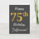 Grey, Faux Gold 75th Birthday + Custom Name Card