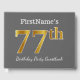 This guest book design features the ordinal number "77th" with a faux/imitation gold-like appearance. It also features a personalised name, and a grey (grey) coloured background. It could be used at a birthday party for somebody who is celebrating their seventy seventh birthday. [~Z0000193]