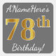 Grey, Faux Gold 78th Birthday + Custom Name Square Sticker