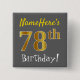 Grey, Faux Gold 78th Birthday, With Custom Name 15 Cm Square Badge