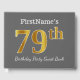 This guest book design features the ordinal number "79th" with a faux/imitation gold-like appearance. It also features a personalised name, and a grey (grey) coloured background. It could be used at a birthday party for somebody who is celebrating their seventy ninth birthday. [~Z0000193]