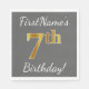 Grey, Faux Gold 7th Birthday + Custom Name Napkin