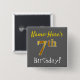 This simple square button design features a message like "Name-Here’s 7th Birthday!", with the "7th" having a faux/imitation gold-like colouring look, on a grey (grey) coloured background. The name can be personalised. Buttons like these could perhaps be worn by guests at a birthday party for somebody who is celebrating their seventh birthday, where the party is being held in a large area with lots of other people present (such as a city park or a theme park). [~Z0000192]