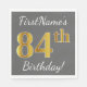 Grey, Faux Gold 84th Birthday + Custom Name Napkin