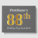 This guest book design features the ordinal number "88th" with a faux/imitation gold-like appearance. It also features a custom name, and a grey (grey) coloured background. It could be used at a birthday party for somebody who is celebrating their eighty eighth birthday. [~Z0000193]