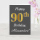 Grey, Faux Gold 90th Birthday + Custom Name Card