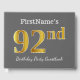 This guest book design features the ordinal number "92nd" with a faux/imitation gold-like appearance. It also features a customised name, and a grey (grey) coloured background. It could be used at a birthday party for somebody who is celebrating their ninety second birthday. [~Z0000193]