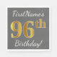 Grey, Faux Gold 96th Birthday + Custom Name Napkin