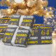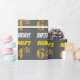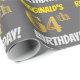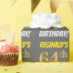 This wrapping paper design features a message like "REGINALD’S 64th BIRTHDAY!", with the "64th" having a faux/imitation gold-like colour appearance, and with the name and "BIRTHDAY" in a fun, bold font. The name can be personalised, and the background is coloured grey (grey). Wrapping paper like this could perhaps be used when wrapping birthday gifts being given to somebody in celebration of their sixty fourth birthday. [~Z0000211]