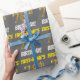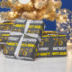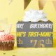 This wrapping paper design features a message like "FIRST-NAME’S 76th BIRTHDAY!", with the "76th" having a faux/imitation gold-like colour appearance, and with the name and "BIRTHDAY" in a fun, bold font. The name can be customised, and the background is coloured grey (grey). Wrapping paper like this could perhaps be used when wrapping birthday gifts being given to somebody in celebration of their seventy sixth birthday. [~Z0000211]